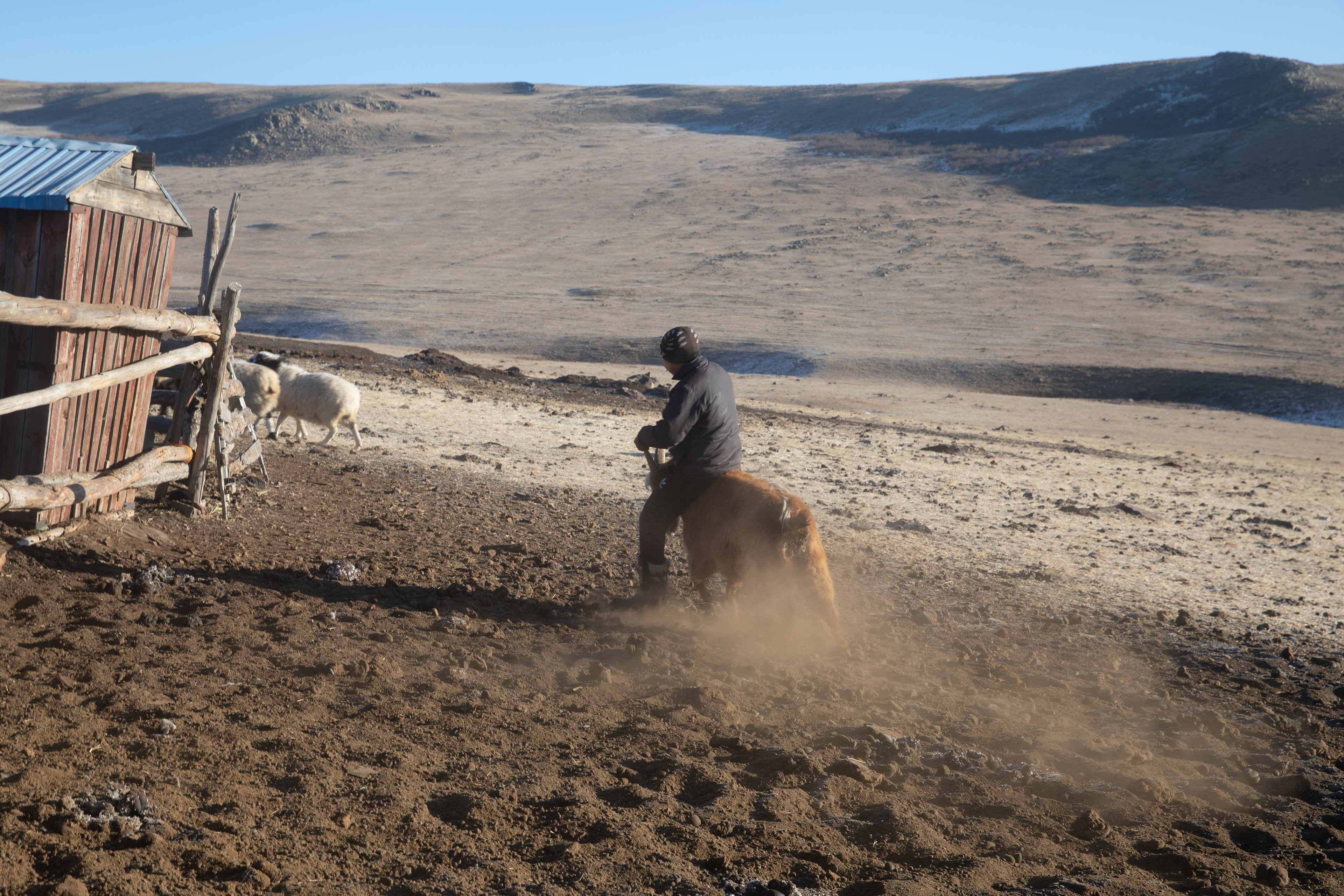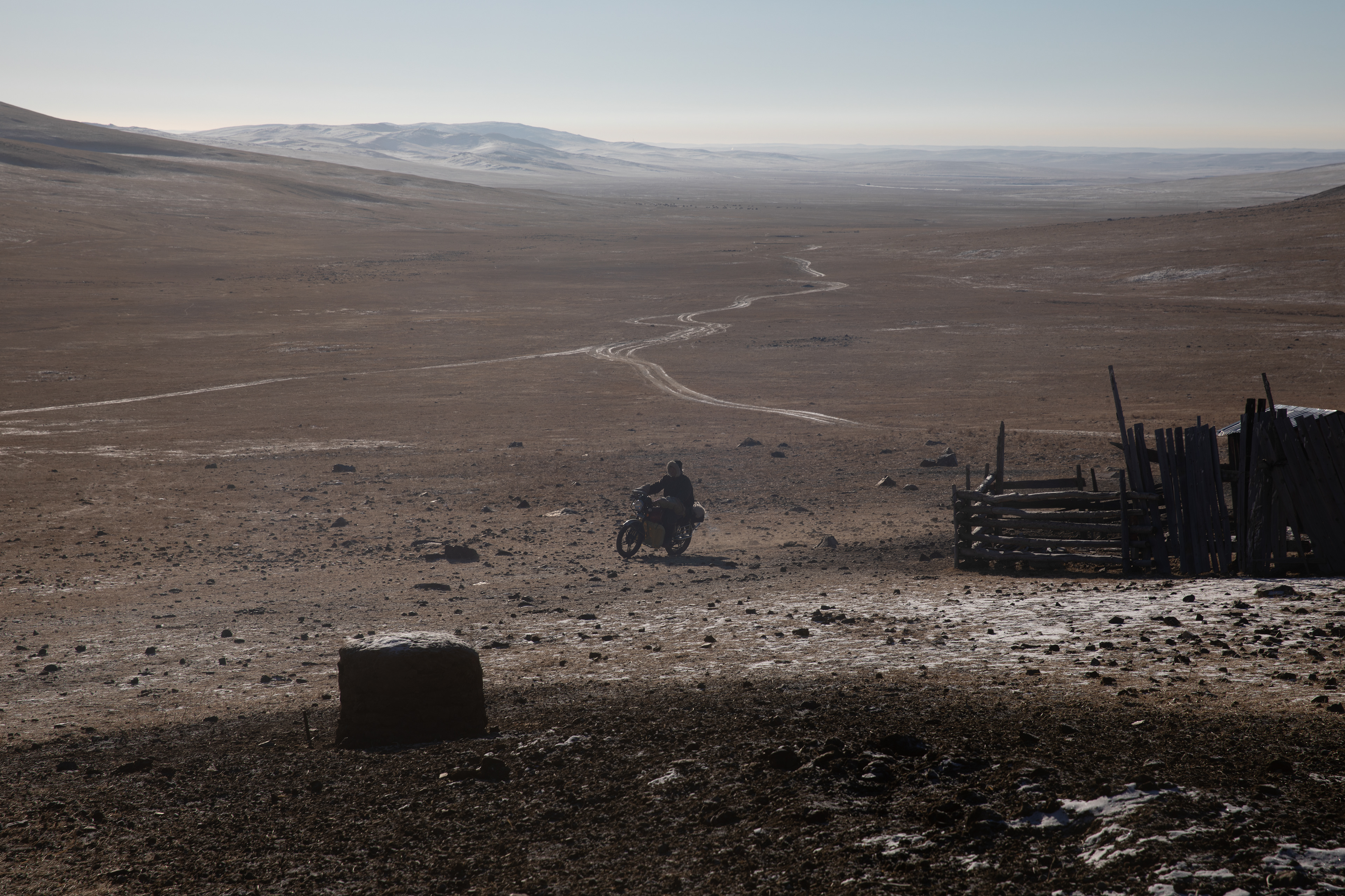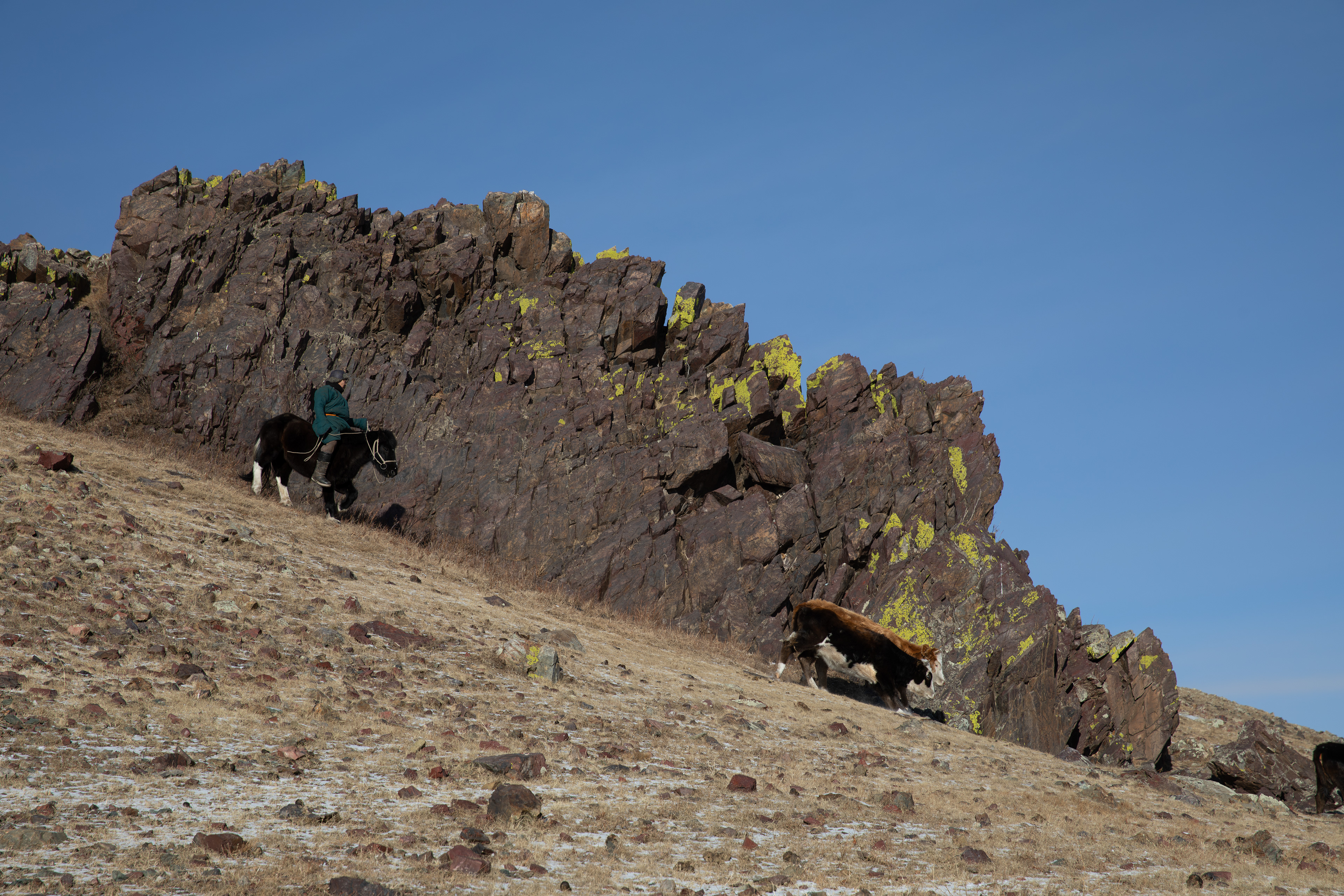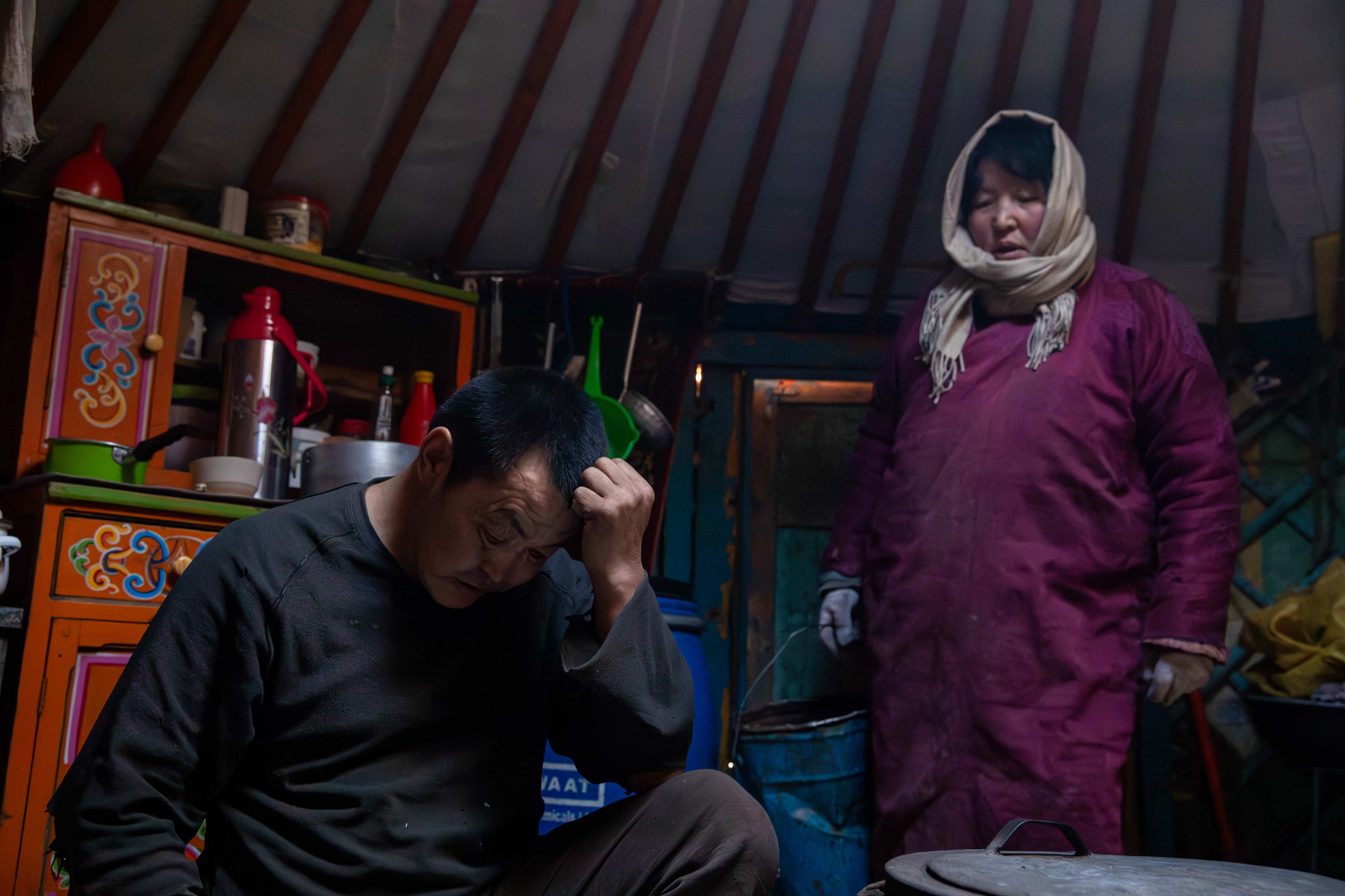 モンゴルの草原で、遊牧民の家族のもとに滞在した。気温は氷点下30度を下回る。休みはない。毎日、家畜を移動させ、凍った地面を越えて水を運び、冬に備えて屠畜を行う。ゲルの中では、家族が伝統的な骨の遊びやトランプに興じる一方で、息子たちはスマートフォンを操っていた。彼らはウランバートルの大学で建築を学んでおり、遊牧を継ぐつもりはないという。労働は途切れず、環境は厳しく、遊牧を営む家族の数は減り続けている。この写真が記録しているのは、存続するかどうかわからない暮らし——休みなく土地に向き合い続けることで成り立つ、共存の一つの形である。