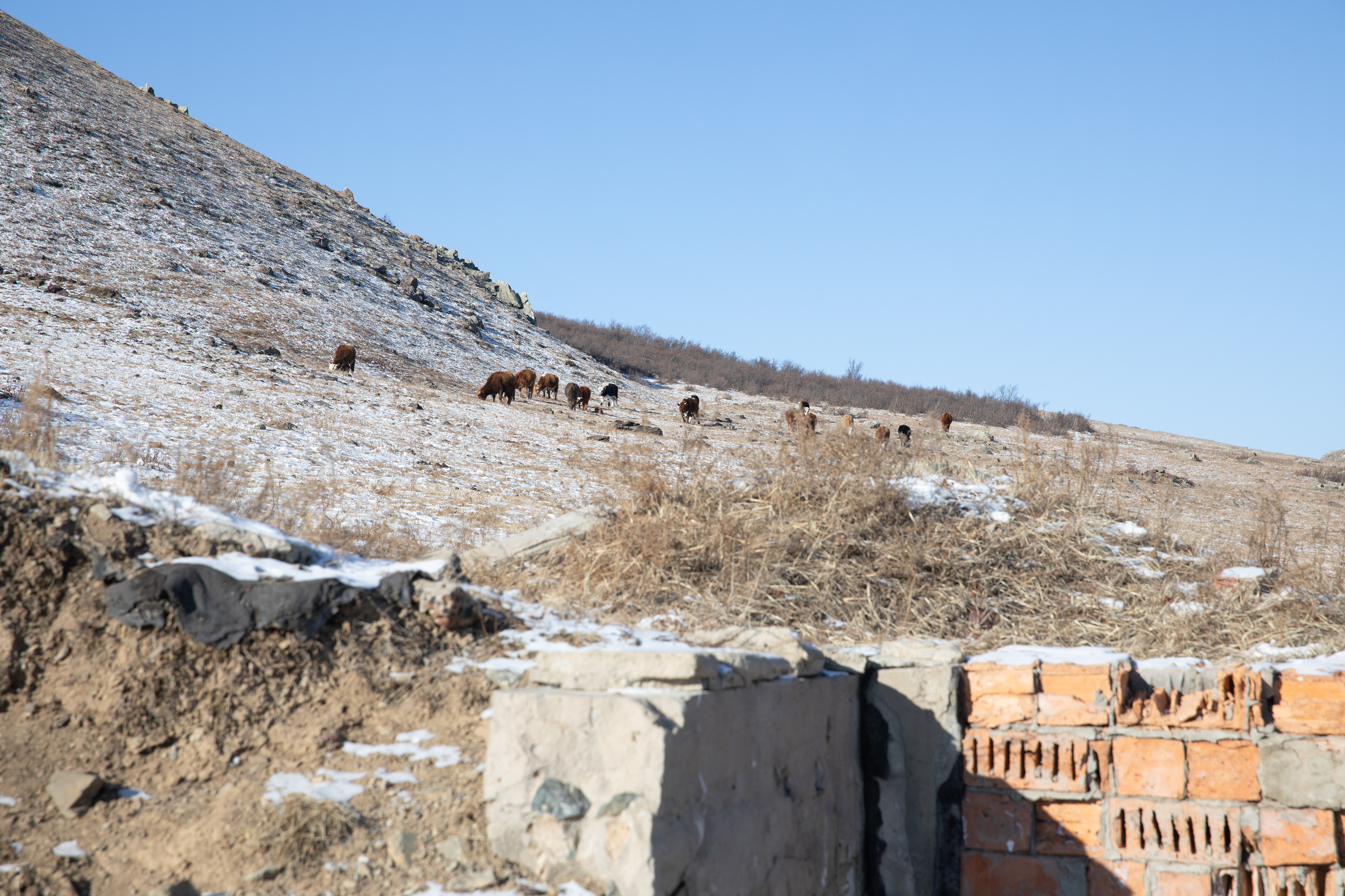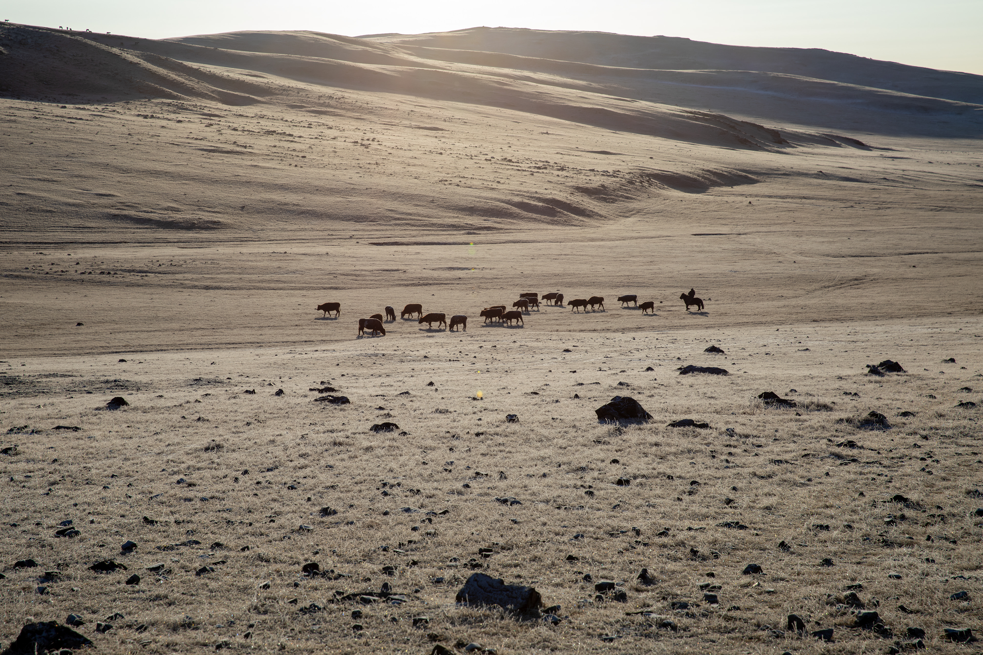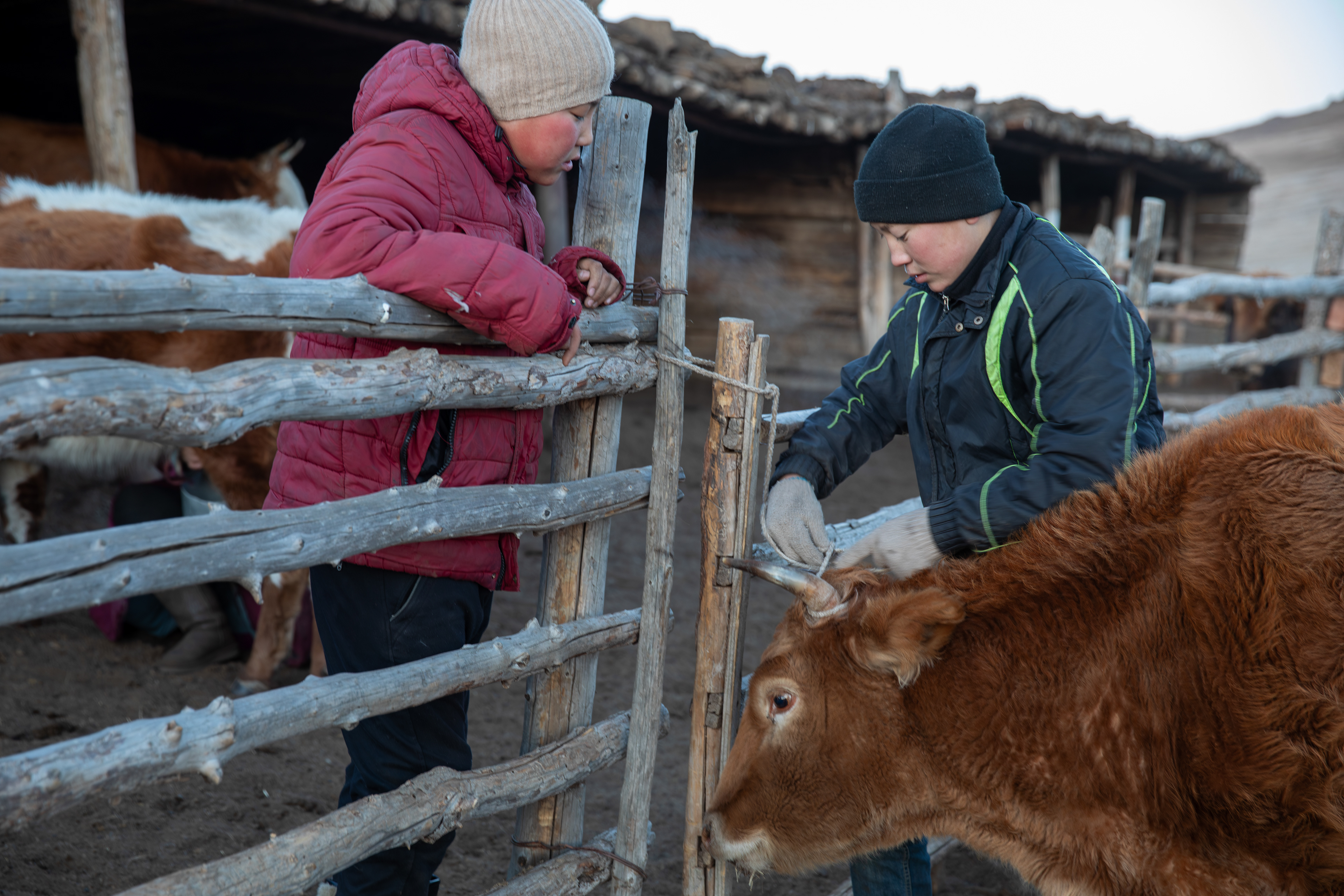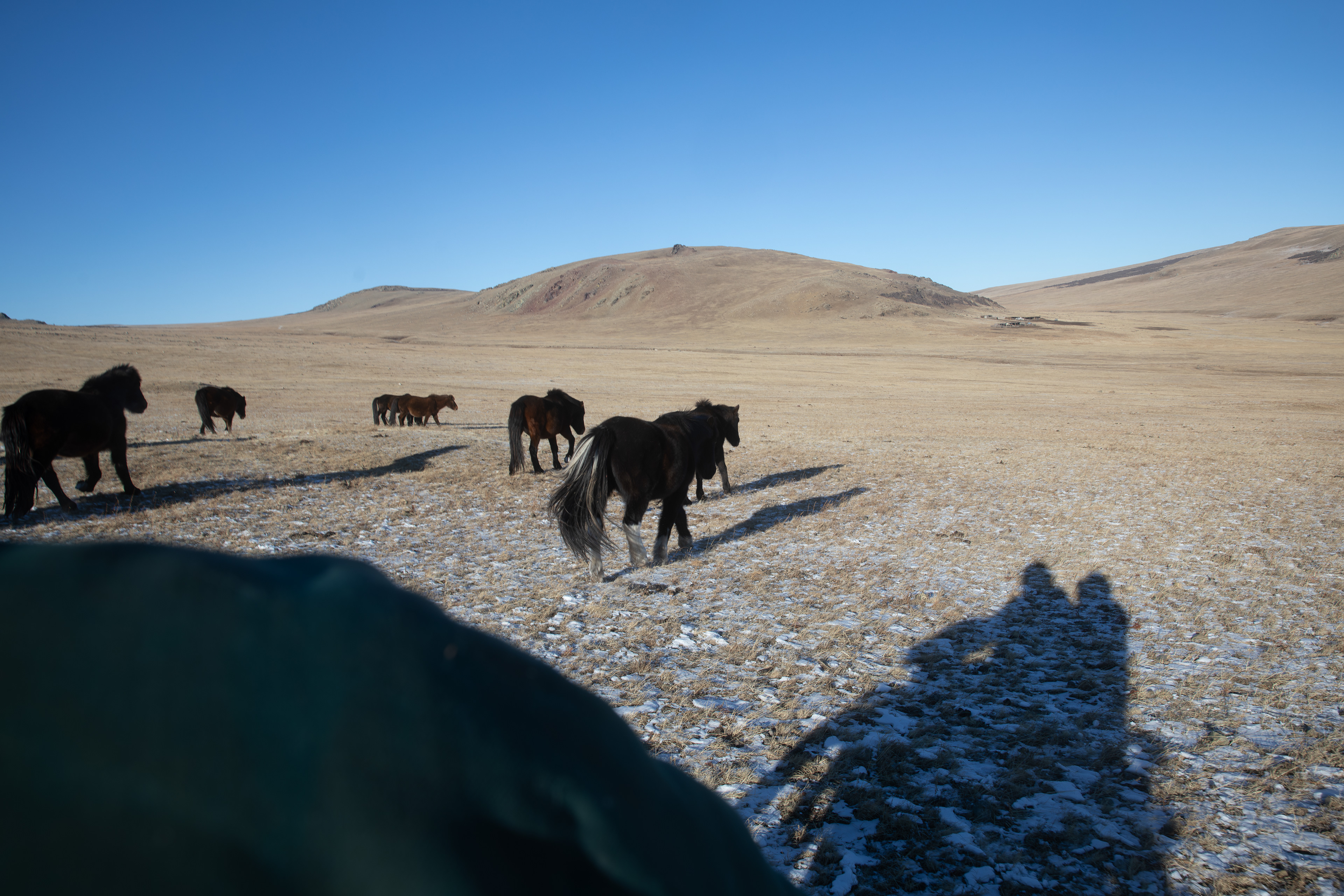 モンゴルの草原で、遊牧民の家族のもとに滞在した。気温は氷点下30度を下回る。休みはない。毎日、家畜を移動させ、凍った地面を越えて水を運び、冬に備えて屠畜を行う。ゲルの中では、家族が伝統的な骨の遊びやトランプに興じる一方で、息子たちはスマートフォンを操っていた。彼らはウランバートルの大学で建築を学んでおり、遊牧を継ぐつもりはないという。労働は途切れず、環境は厳しく、遊牧を営む家族の数は減り続けている。この写真が記録しているのは、存続するかどうかわからない暮らし——休みなく土地に向き合い続けることで成り立つ、共存の一つの形である。