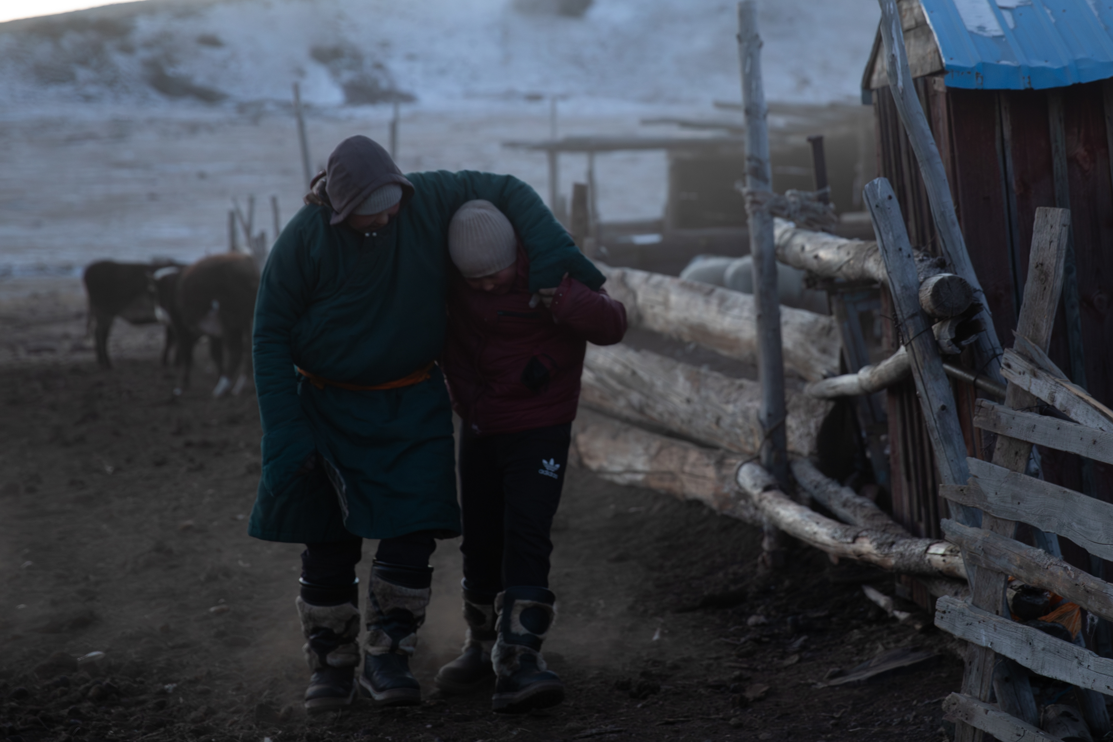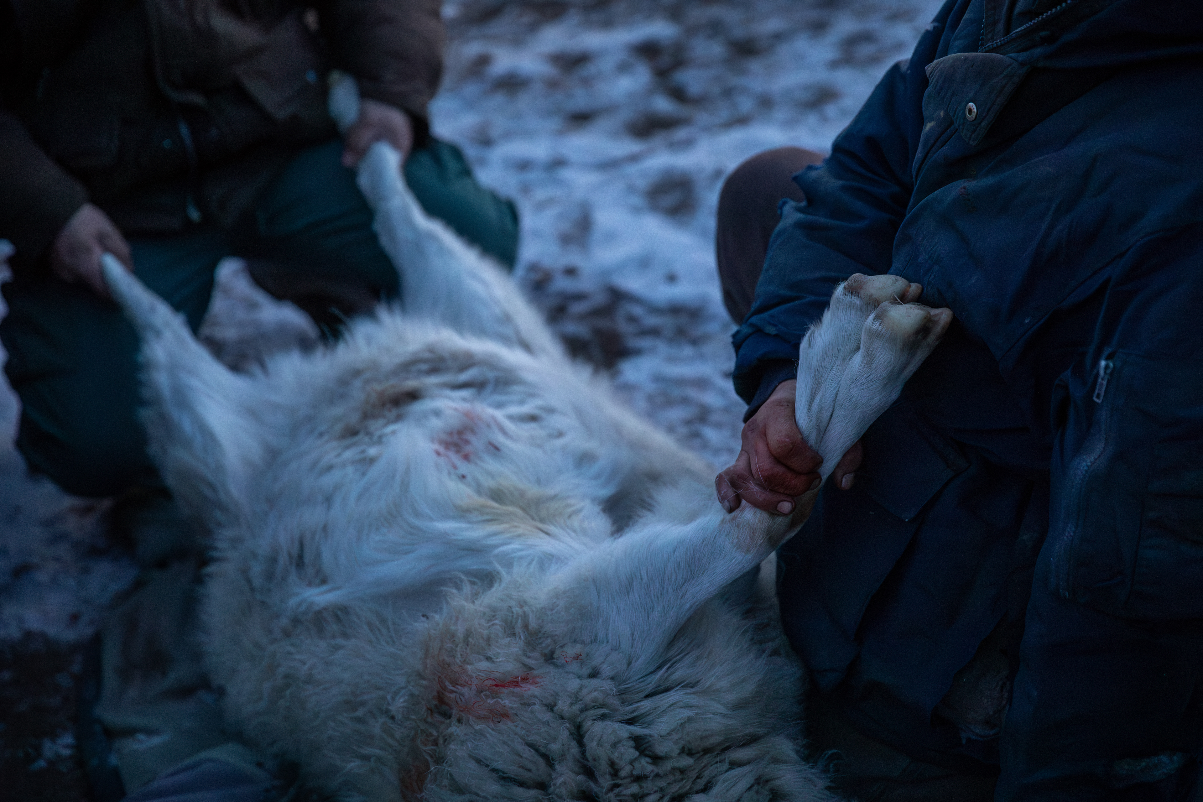 I stayed with a nomadic family on the Mongolian steppe in winter. Temperatures fell below −30°C. Every day without exception, they moved livestock, hauled water across frozen ground, and slaughtered animals to prepare for the months ahead. There were no days off. Inside the ger, the family played traditional bone games and cards; the sons scrolled through their phones. They were studying architecture at a university in Ulaanbaatar and did not intend to continue the nomadic life. The work is relentless, the conditions severe, and the number of herding families continues to decline. What the photographs record is a way of living that may not persist—a form of coexistence with the land, sustained only by unrelenting daily labor.